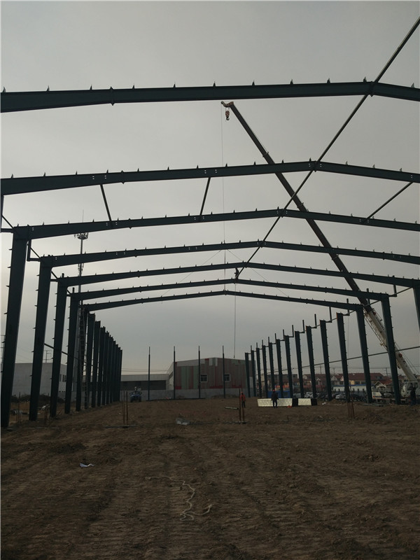 濱州現(xiàn)代物流倉(cāng)庫(kù)工程項(xiàng)目建設(shè)進(jìn)展———上梁、1.2米基礎(chǔ)上墻